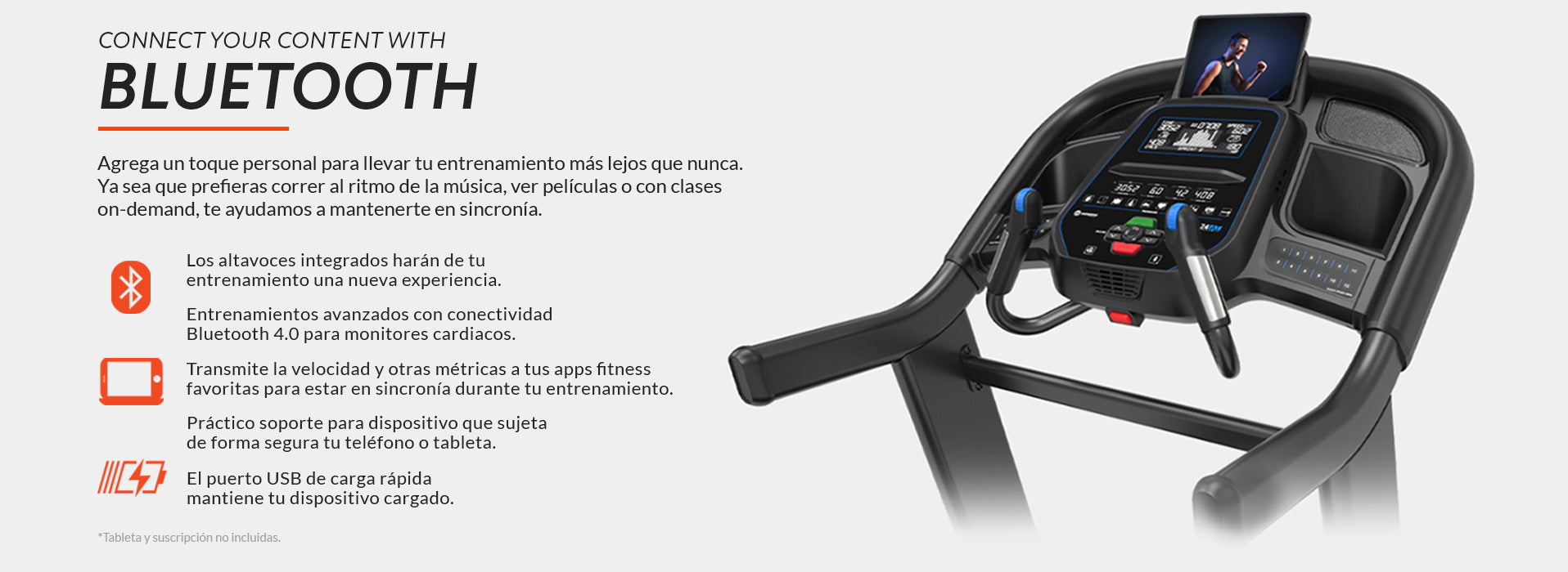 - Conectividad Bluetooth avanzada para distintos dispositivos para seguir tus clases en streaming y entretenimiento a través de las bocinas integradas; monitorea tu ritmo y más.