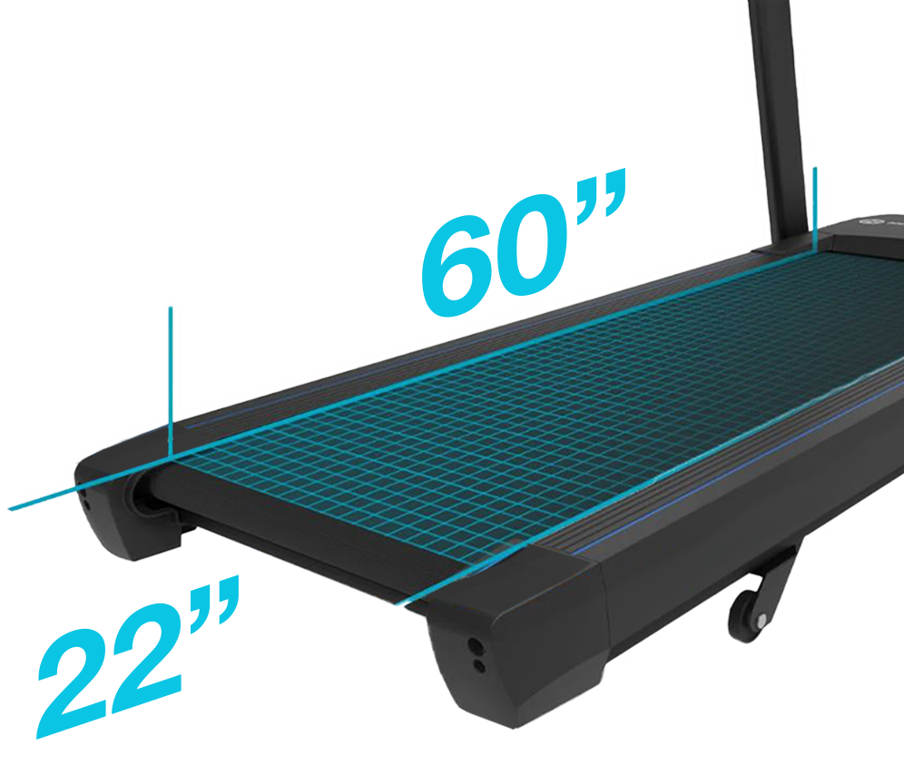 - La superficie para correr de 22x60" brinda un amplio espacio para sprints intensos y entrenamientos HIIT.